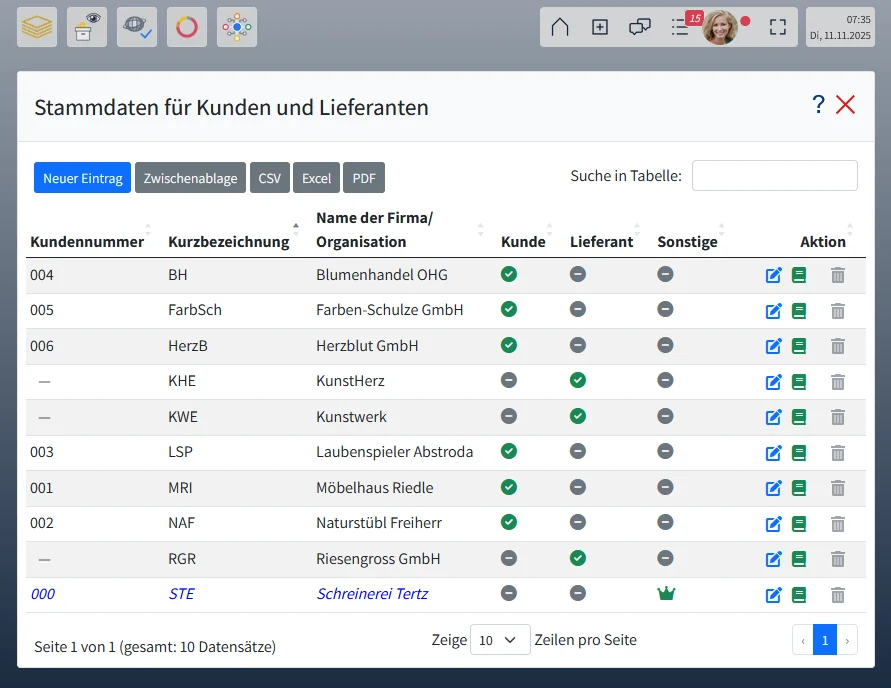 Deine zentrale Kunden- und Lieferantendatei